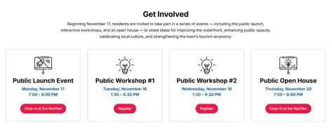 All residents are invited to meet the Urban Strategies team, learn more about the project, and share their ideas for improving the waterfront, enhancing public spaces, celebrating local culture, and strengthening the town’s tourism economy.