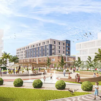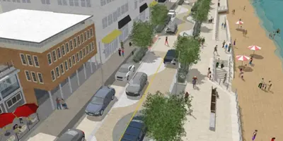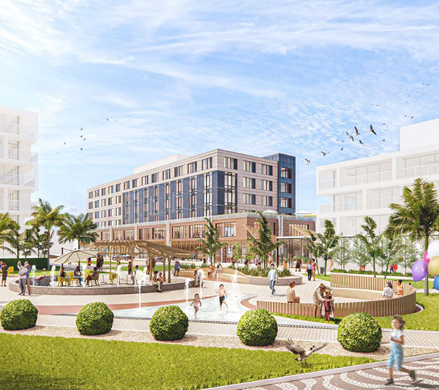 City Building, Mixed Use, Residential, Commercial, Community Space, Beachfront, Transportation Infrastructure.
